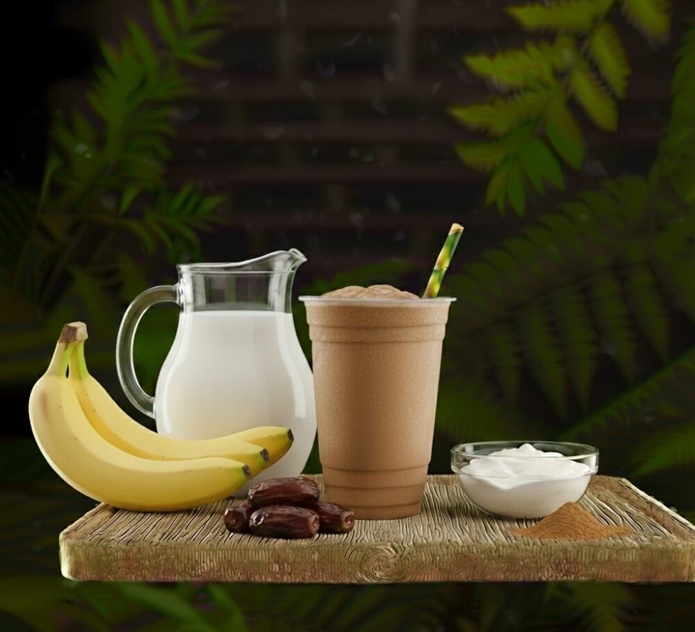 Milk, Banana, Organic Cacao, Dates, Yoghurt, Cinnamon