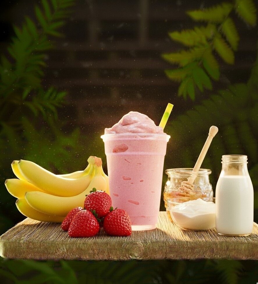 A thick, fruity blend of ripe strawberries and chilled milk for creamy, feel-good energy.