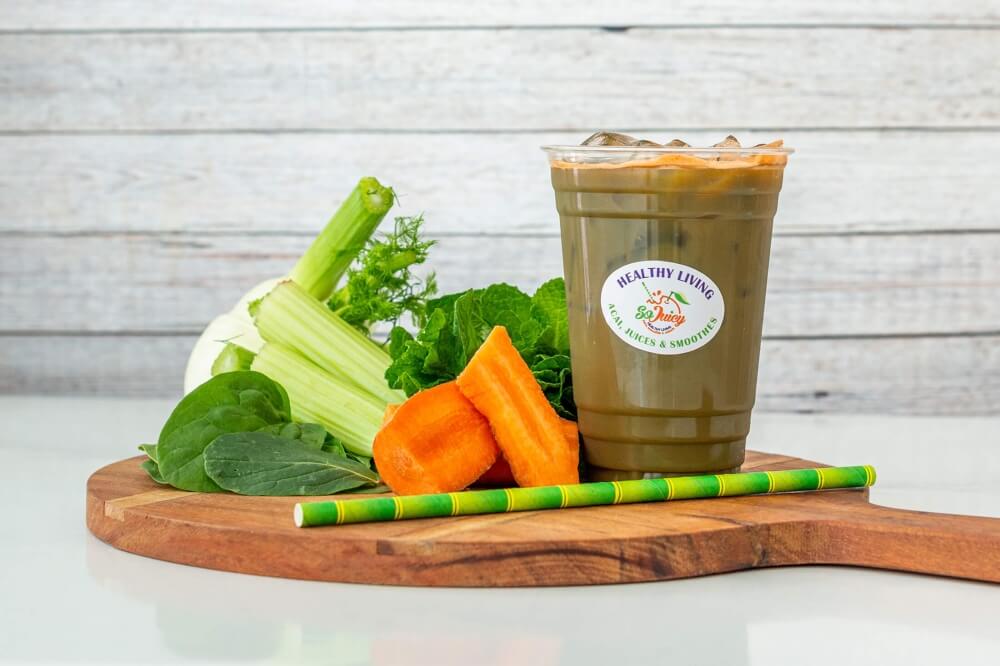 A vibrant, iron-rich energizer made with apple, carrot, celery, beetroot, and ginger.