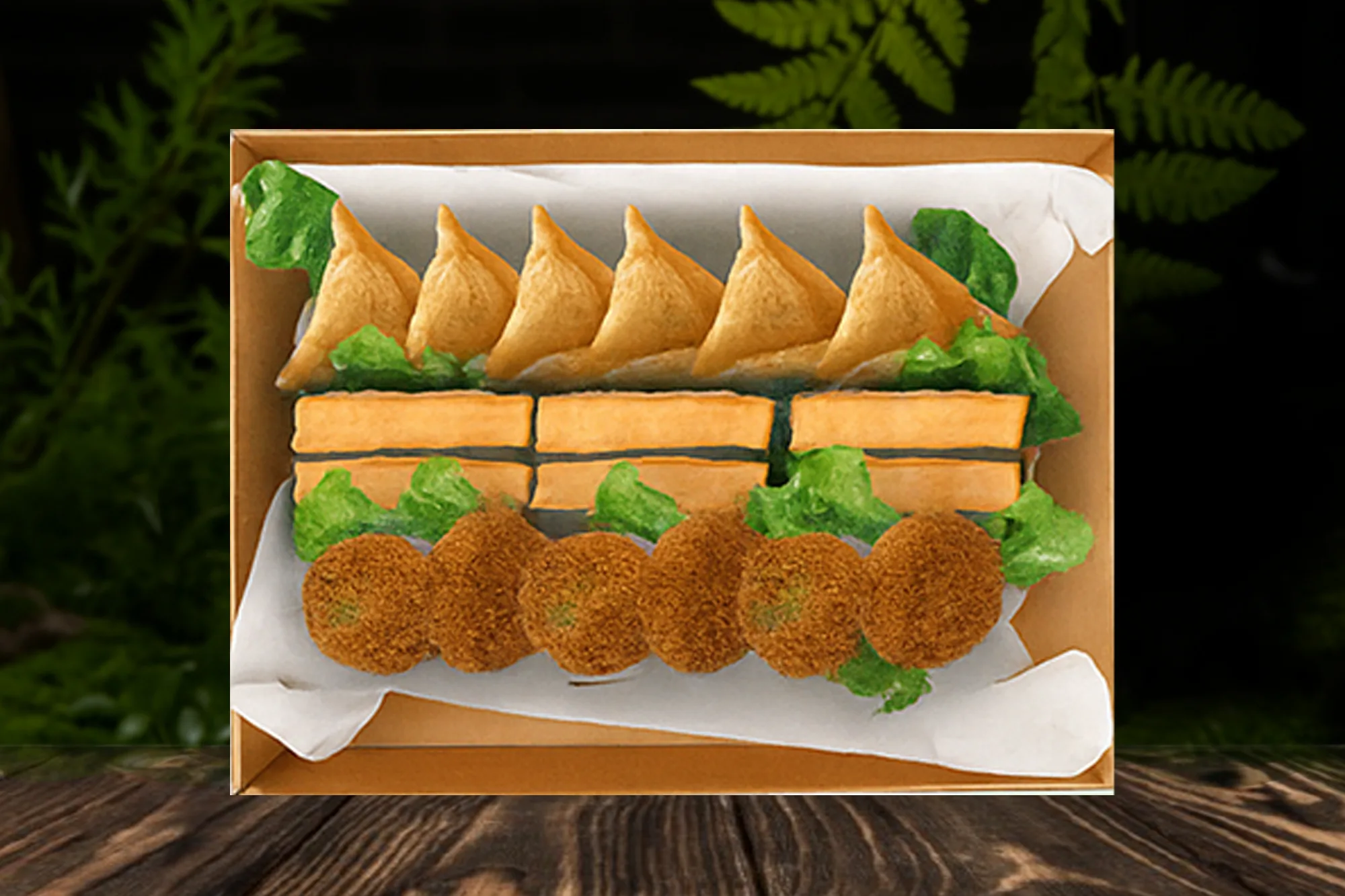 Indulge in our crispy golden 6 samosas with 6 spring rolls and 6 vegetable cutlets a treat for all your snack ! Serve with barbecue sauce.