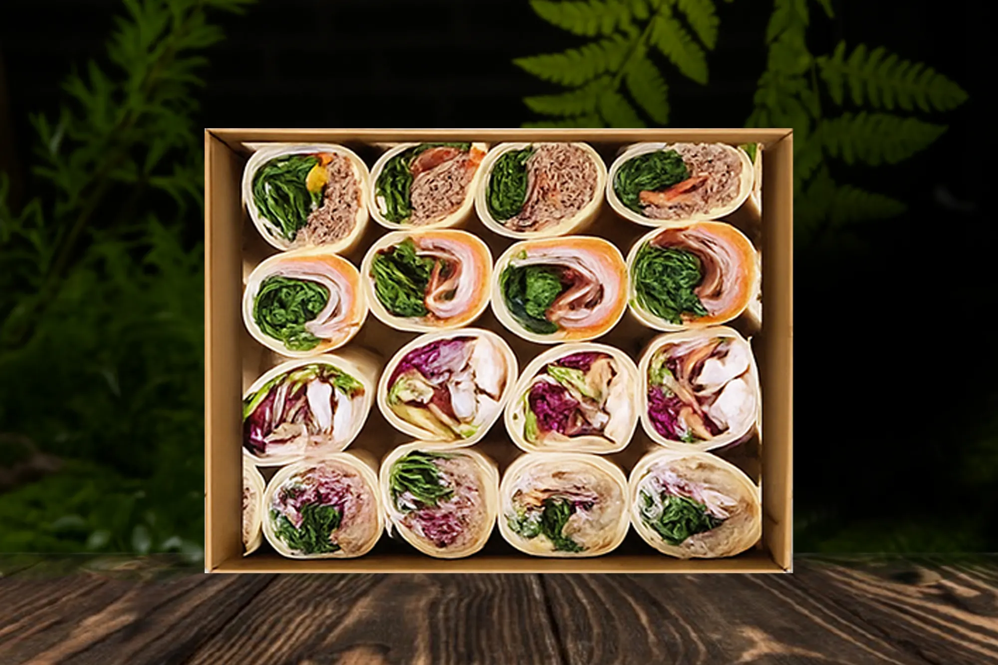 16 Pcs. bite size to choose from Curried Egg, Periperi, Char Grilled Chicken, Ham Cheese, Falafel, Egg & Lettuce.