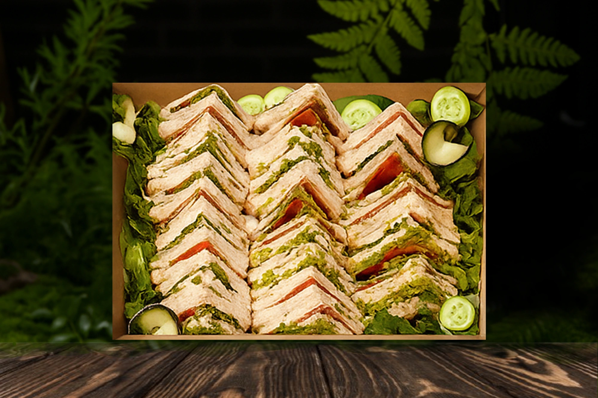 20 Small pieces to choose from Curry Egg, Chicken Avo, Ham & Cheese, Egg & lettuce, Tuna Corn, Veggie, Hummus, Bombay Grilled.