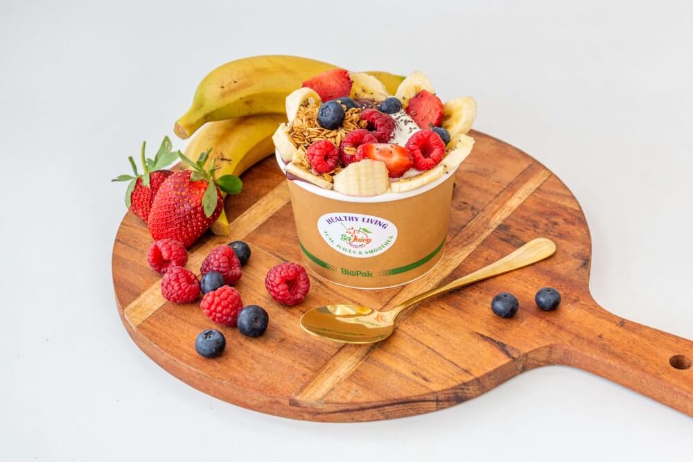 8 Bowls to choose from Original, Nutty, Fruity, Protein, Coco, Chia, Yoghurt Acai, added with Granola.