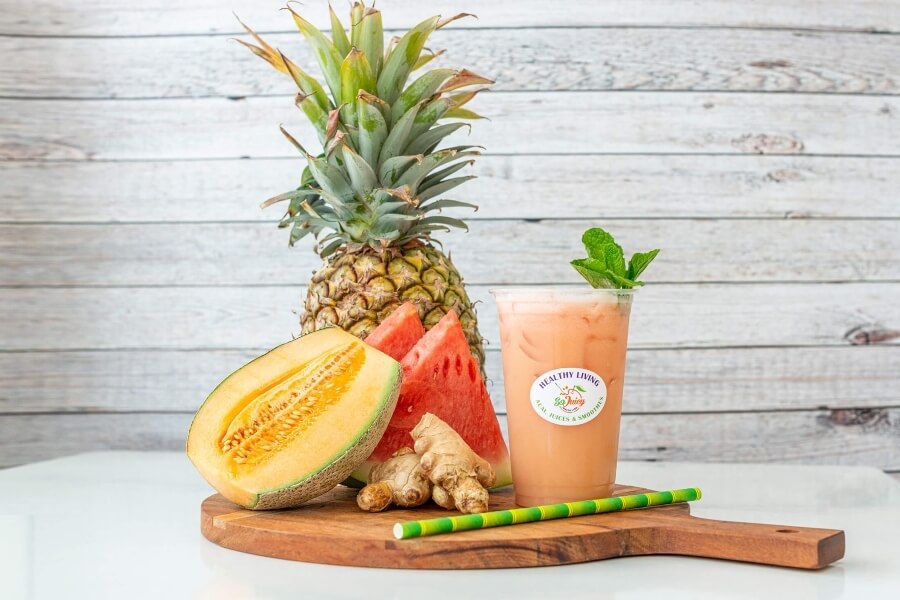 Pick-me-up for immunity and digestion. Crafted with pineapple, mixed melons, and fresh ginger.